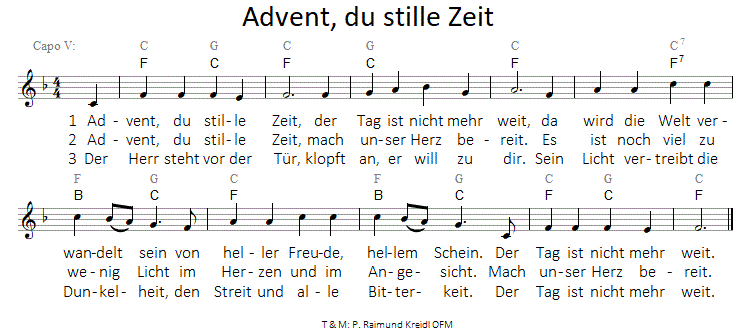 Die Ständige Kommission für die Herausgabe der gemeinsamen liturgischen Bücher im deutschen Sprachgebiet erteilte für die aus diesen Büchern entnommenen Texte die Abdruckerlaubnis. Die darin enthaltenen biblischen Texte sind Bestandteil der von den Bischofskonferenzen des deutschen Sprachgebiets approbierten revidierten Einheitsübersetzung der Heiligen Schrift (2016). © 2020 staeko.net; "Advent, du stille Zeit" mit freundlicher Genehmigung des Autors Raimund Kreidl OFM; Der Verfasser ist für die Abklärung der Rechte Grafiken, Fotos und weitere Texte betreffend verantwortlich. Grafiken: wwgrafik.at.
