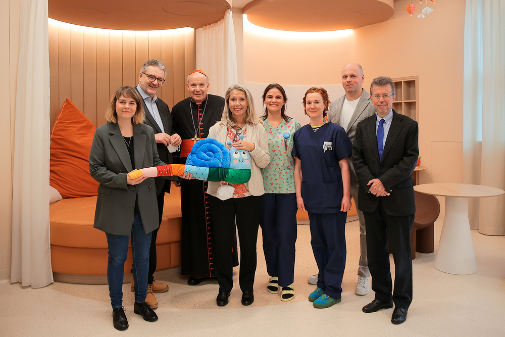 Kardinal Schönborn segnet neues Kinderpflegedomizil "Fridolina" im Haus der Barmherzigkeit. Dieses bietet ein stationäres Pflegeangebot für chronisch kranke Kinder.